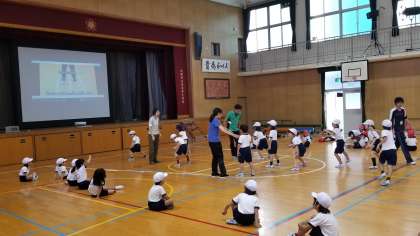 1年生の体力テストの様子です。反復横跳びのテストを画像で確認しながら実施しました。