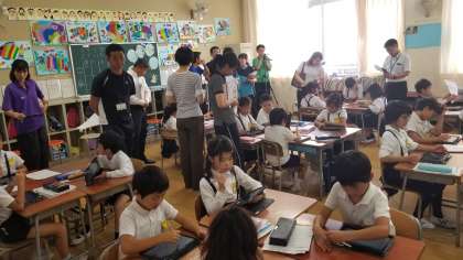 昨日の授業研究の様子です。2年2組でICTを活用した授業の研究を行いました。教科は「生活科」です。