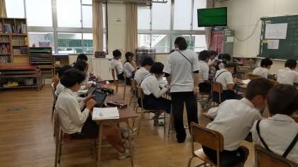 6年2組の授業の様子です。算数の授業です。タブレットを活用して授業を行っています。
