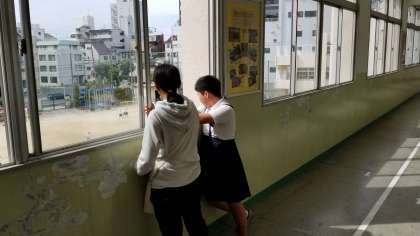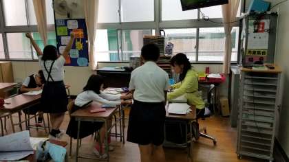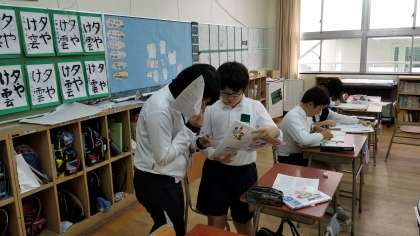 休み時間の教室での様子です。先生に質問をしたり、静かに自習をしたり、お友だちと楽しく遊んだりといろいろな時間のすごし方をしています。