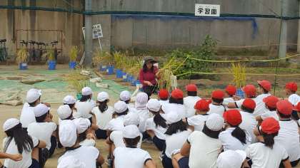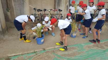今日の午後、5年生が稲刈りをしました。