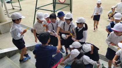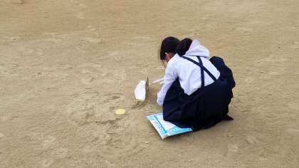 3年2組が理科の学習で、地面の温度を測定しました。日なたと日かげでどれくらい温度が違うのでしょうか。気になりますね。