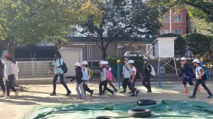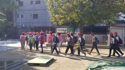 担任の先生から、「楽しい遠足にしましょう。ルールを守って行動することも学びましょう。」と注意がありました。「いってらっしゃい。」