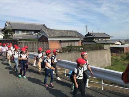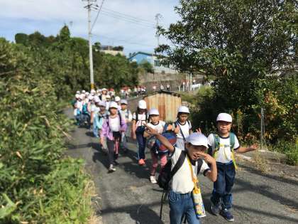 待ちに待った遠足です。けがや事故のないように注意しましょう。先生の指示を聞いて、集団行動ができるように指導しています。