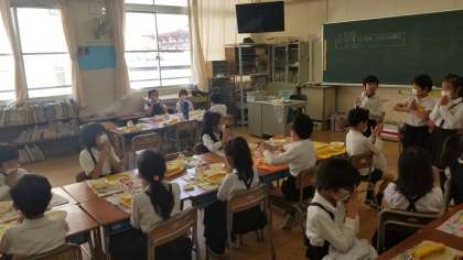 2年生の給食の様子です。楽しくしっかりと食べています。いただきます。