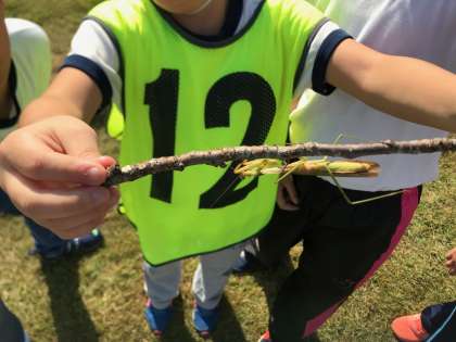 食事の後の活動は「自由遊び」です。大好きな虫もいっぱいいました。芝生で寝転んで気持ちよかったです。
