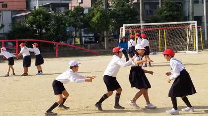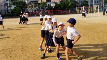 今日は体育朝会が行われました。先週とは違う種目で体づくり運動を行います。