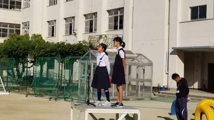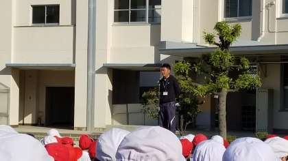 本日児童朝会を行いました。校長先生からは「スマホやゲームについて」と「PTAソフトボール市大会ブロック3位」についてお話と報告がありました。図書委員からは「辞書引きコンクール」について、竹内先生からは週目標についてお話がありました。今週の目標は「体調を整えよう。」です。
