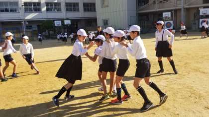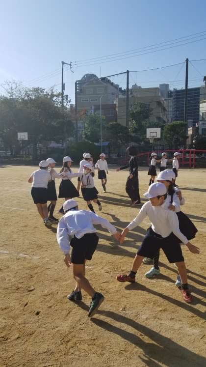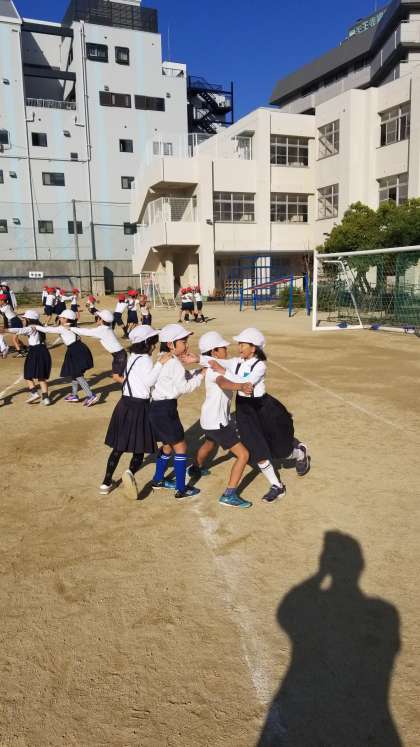 とても良い天気で、気持ちよく運動をしています。担当の先生からも「しっかりからだを動かしましょう」と指導がありました。
