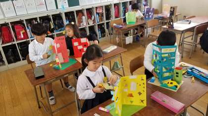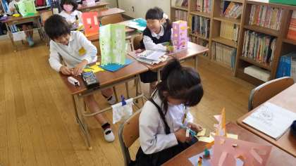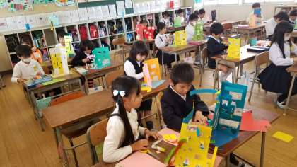 2年1組の図工の様子です。細かな作業ですが、みんな上手に作っています。