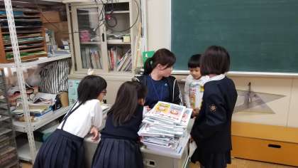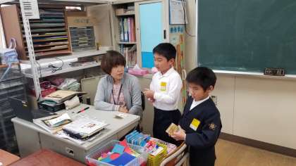 2年生の朝の様子です。九九のテストやノートの点検をしてもらっています。