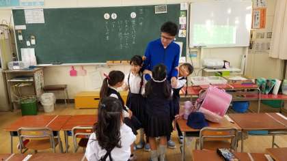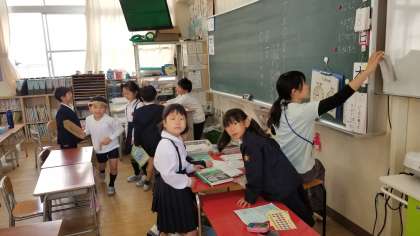朝の様子です。担任の先生を囲んで楽しそうです。
