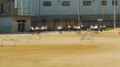 5年生は、体育と図画工作の授業でした。1組は、ハードル走にチャレンジしていました。2組は、天小産の柿をかいていました。