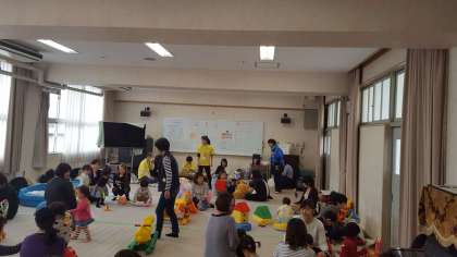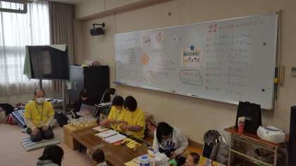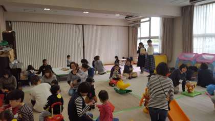 2ヶ月ぶりに天小で「ひまわり」がありました。多くの方が参加され、ベビーカーが廊下にいっぱい並べられていました。