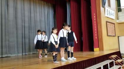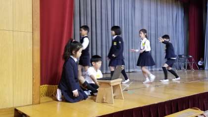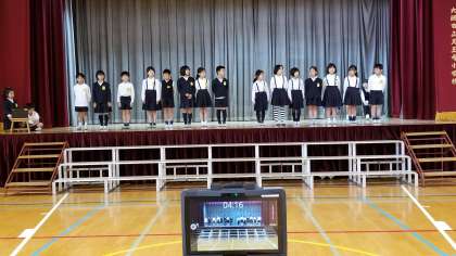 2年生が、学習発表会に向けて練習をしています。ICT機器を取り入れて頑張っています。