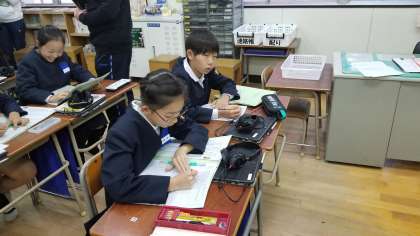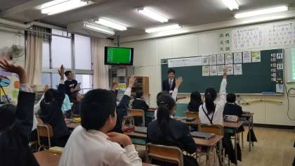 本日6校時に、5年2組で外国語活動の授業研究会が行われました。