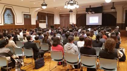 昨日、天王寺区役所のホールで、学校保健協議会の総会と講演会が行われました。