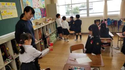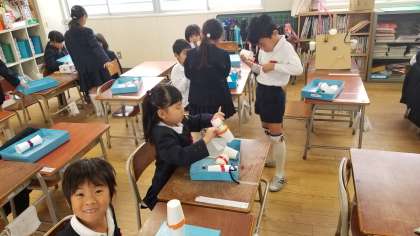 おもちゃ作りをしています。工夫したおもちゃができたかな。