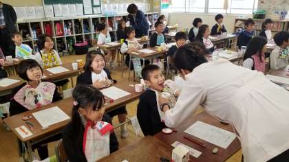 指導は、学校歯科医の西本先生と歯科衛生士の方です。