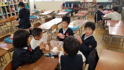 低学年の休み時間の様子です。トランプゲームで楽しんでいます。