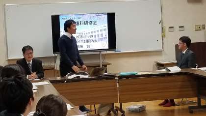 授業終了後、教職員で研究討議会を行いました。講師に教育センター 園辺先生、本田小学校首席 流田先生をお迎えして学習しました。