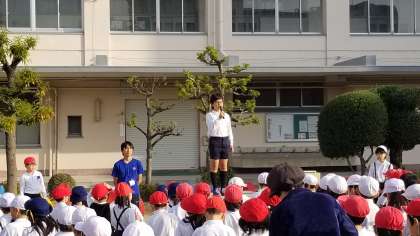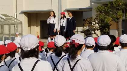 体育朝会終了後、児童会から連絡がありました。