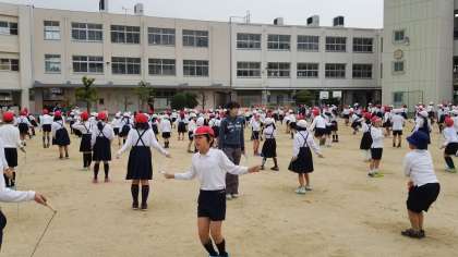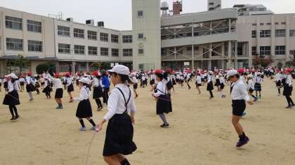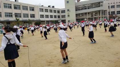 本日体育朝会を行いました。運動の内容は縄跳びです。