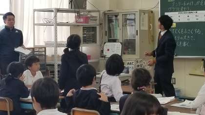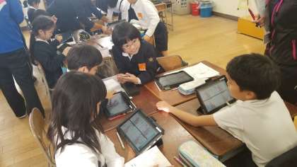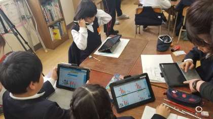 「3年生の好きな動物アンケート」の結果を、タブレットを活用してぼうグラフに表します。どうすれば「見やすいぼうグラフ」になるか考えました。