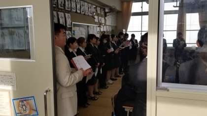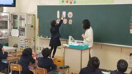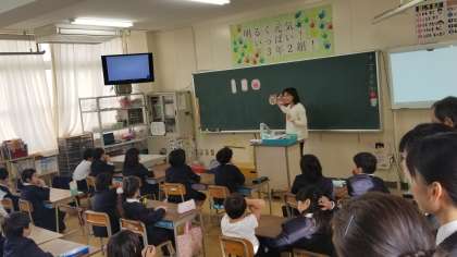 今日の5時間目、3年2組で教職実践演習が行われました。大阪夕陽丘学園短大の食物栄養学科の学生が、本校の栄養教諭藤戸先生の栄養指導の様子を参観して研修しました。