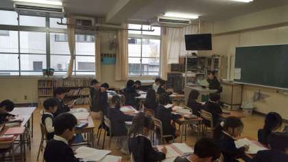 1組は、図工の授業で、絵具を使って、色づくりをしていました。