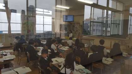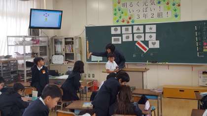 2組は、外国語活動でクエッションのアンサーのため、答えを探してうろうろしていました。