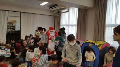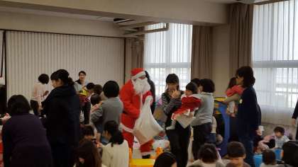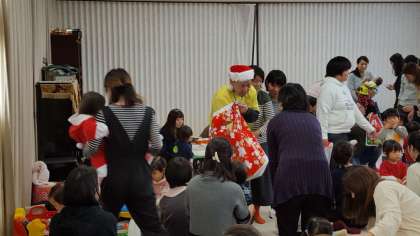 クリスマス会ということもあって、サンタさんが登場しました。子どもたち1人ひとりにプレゼントが手渡されました。いい思い出になったことでしょう。プレゼントの中身は何だったのでしょうか。
