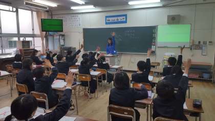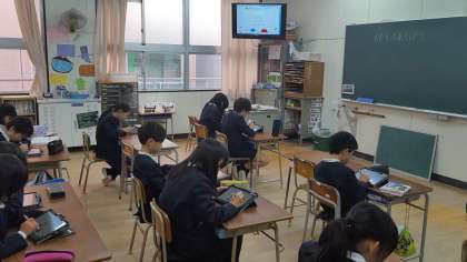 1組は、算数の授業でした。先生の出した難しい問題に、素早く手を上げていました。先生と子どもたちの信頼関係によってなせる業・・・・、素晴らしかったです。