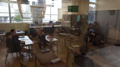 2組では、図画工作で、絵具を使って絵を描いていました。一生懸命にがんばっていました。