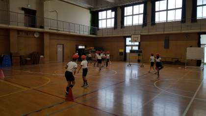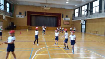 3年1組は、体育の授業で「フリルボール」の試合をしていました。