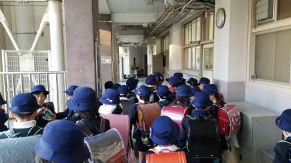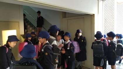 8時のチャイムが鳴るまで教室には入れません。廊下で待機しています。