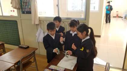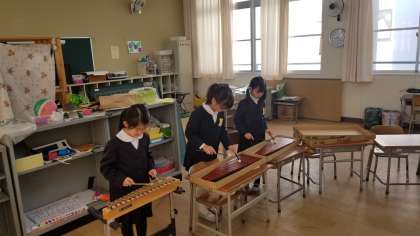 2年生の朝の様子です。音楽発表に向けて自主的に練習している児童がいました。