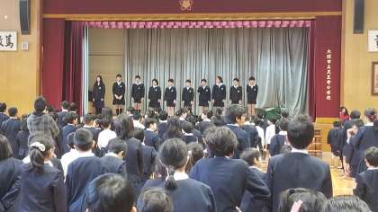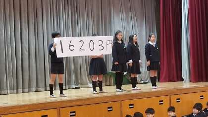 集会の最後に、児童会の代表から「ユニセフ募金」の報告がありました。募金総額は16,203円です。ご協力ありがとうございました。