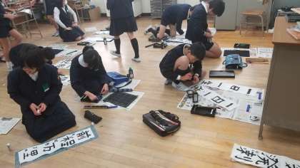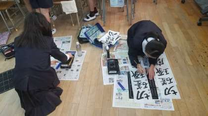 6年生の国語の様子です。1・2組ともに書初めをしていました。「前程万里」「切磋琢磨」など新しい年を迎えて、自分の気持ちを表していました。