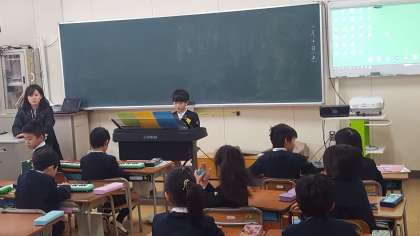2年2組は、合奏の練習をしていました。パートに分けて練習をしていました。