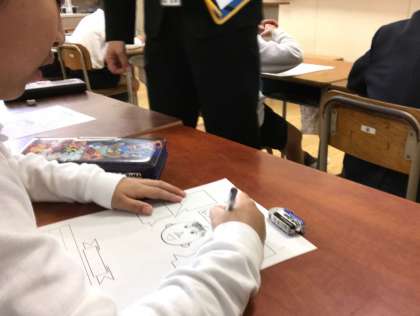 じぶんせつめいのシートに記入し、それをタブレット端末を使って交流しました。