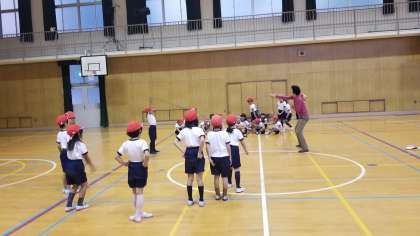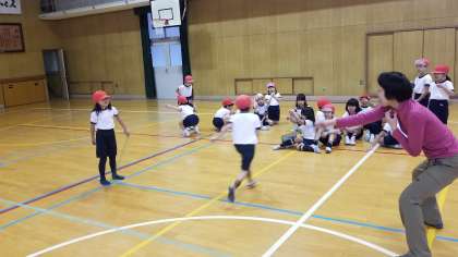 1組は体育館で縄跳びの運動をしていました。「頑張れ」の声援がとても気持ちよく聞こえてきました。