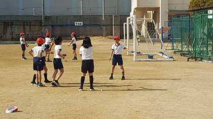 4年1組の体育は長縄を使っての授業でした。グループに分かれて、いろいろな跳び方にチャレンジしていました。
