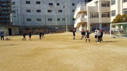 長縄を使ってのグループでの学習でした。さすが高学年とても上手に跳んでいました。うまく跳ぶには回している人が大切なのです。