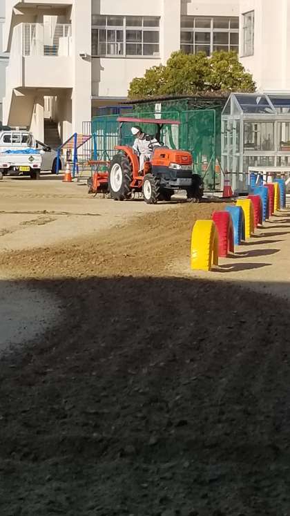 ふかふかで、活動しやすい運動場になります。1ヶ月の間我慢をしてください。