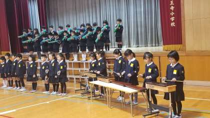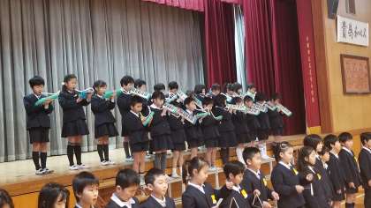 合唱「にじ」と合奏「アイアイ」の発表です。