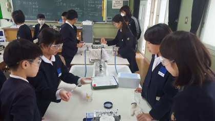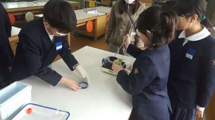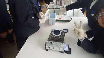 理科室で蒸発の実験です。ミョウバンと食塩を蒸発させ観察していました。