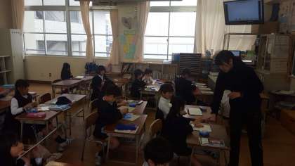 3角形の色板を使って図形の学習をしていました。それぞれ色を使い分けいろいろな図形を考えていました。