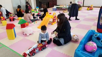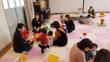 本日、多目的室で「ひまわり」の活動がおこなわれました。乳幼児がかぜ等にも負けず元気に遊んでいました。