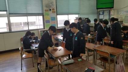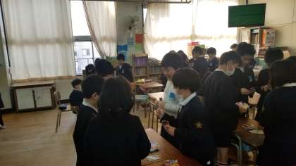 4年生の休み時間の様子です。室内でカードゲーム等で遊んでいます。